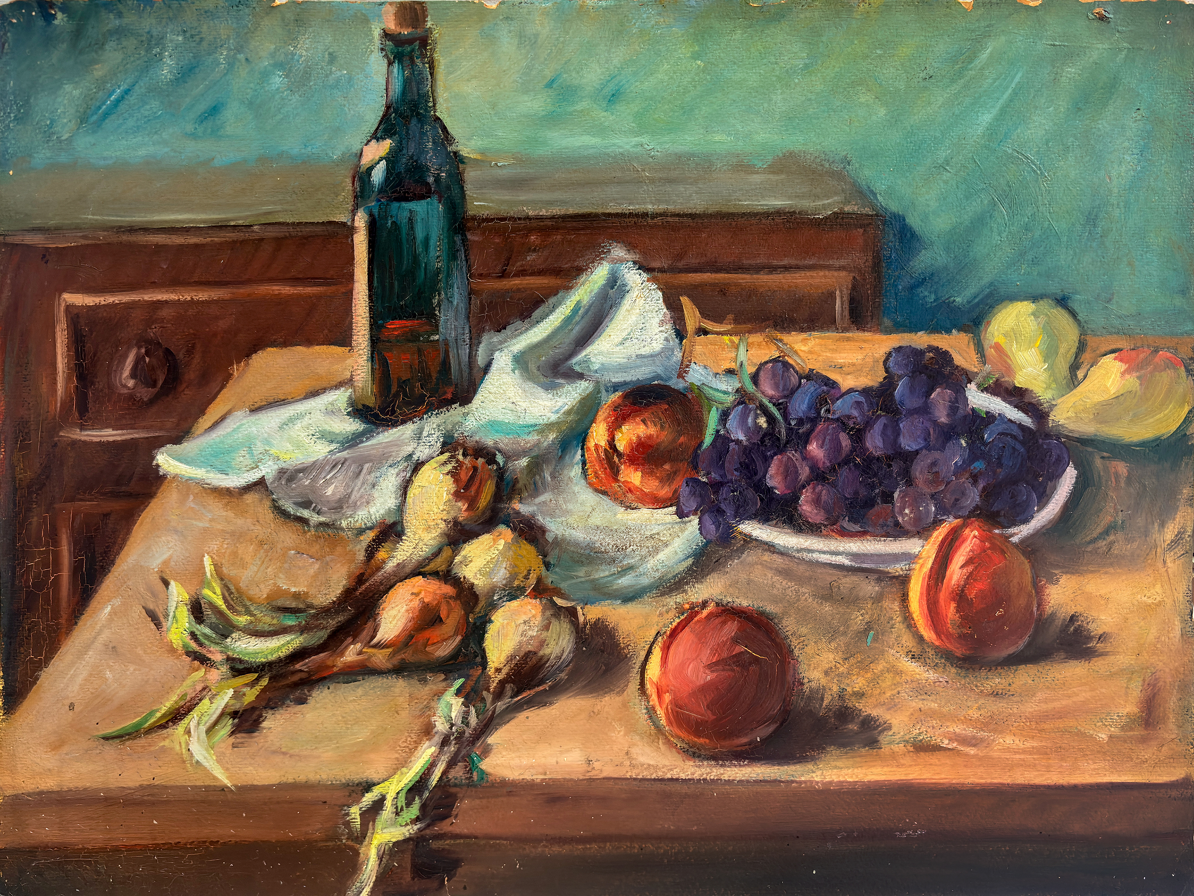 UNA BOTELLA, UVAS Y UNAS CEBOLLAS